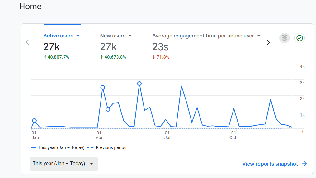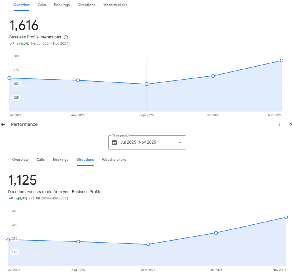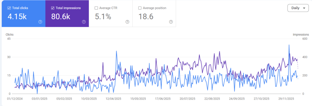 Clear transition from low discovery to consistent, intent-driven organic traffic.
